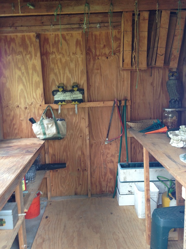 The Garden Shed next to the vegetable garden fell into disuse. The garden lay dormant for quite a few years - the wooden posts around the garden fell to the ground and the chicken wire surronding the garden was buried under years of tall grass. The Garden Shed suffered the same neglect as the garden. In June 2015 the Garden Shed had some minor repairs done and got a new fresh coat of paint.